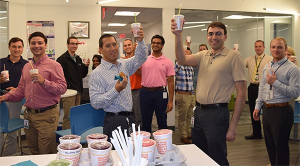 IDT values collaboration and sponsors a variety of activities to keep team members connected and informed. Employees gather regularly for All Hands Meetings, during which they hear directly from our CEO and IDT leadership. At these meetings, there’s also a focus on recognizing employee accomplishments and milestones. During the work day, employees come together for more casual social events such as IDT Monthly Lunches, Chili Cook-offs, and Smoothie Breaks. Still hungry? Dig into our snack baskets or grab a sparkling water from the fridge!